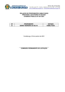26 de outubro de 2021 17 de março de 2022 / Por Prefeitura de Cordisburgo / 0 Comentários Relação de Proponentes Habilitados Os comentários estão desativos para este post.